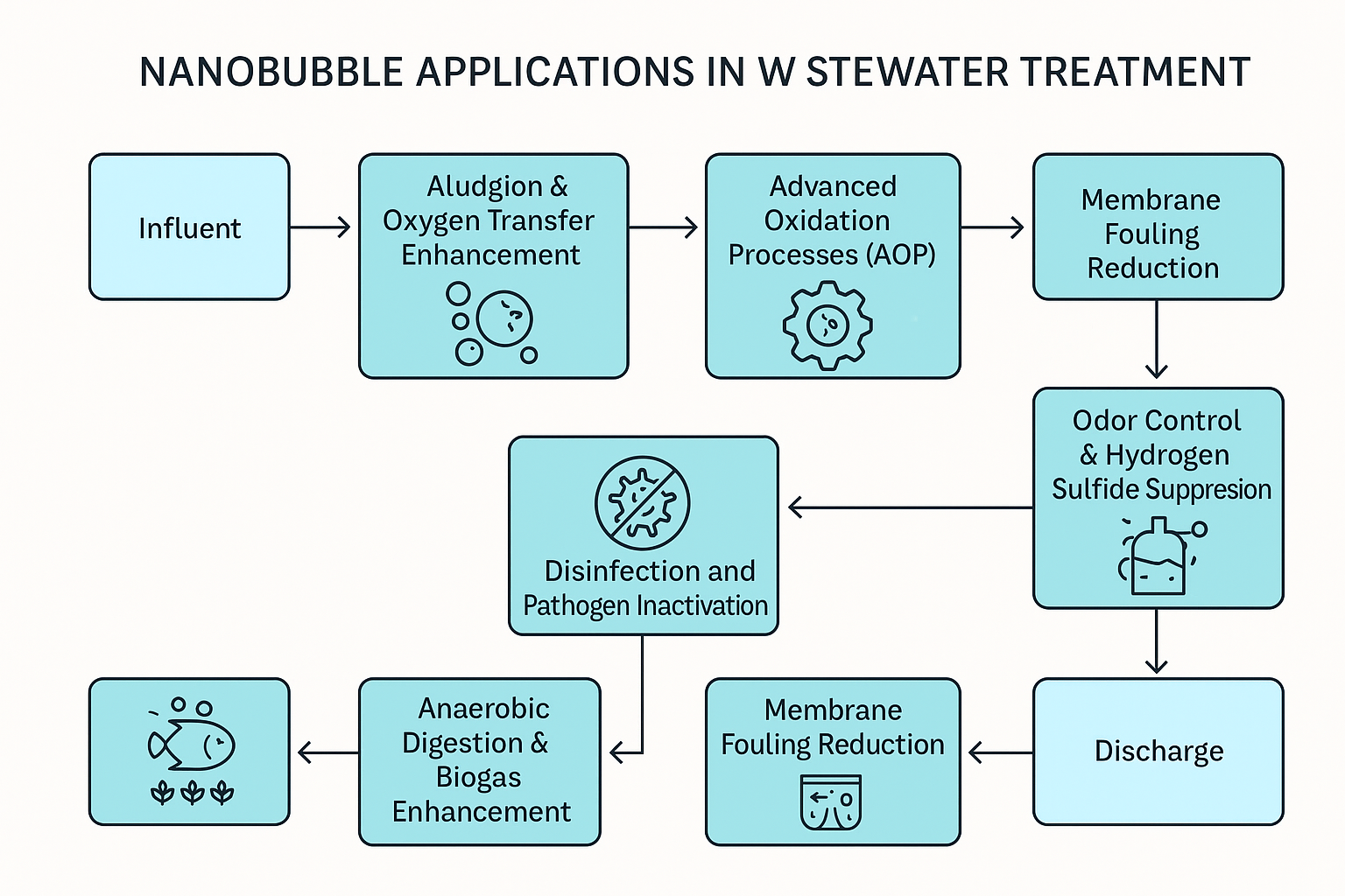 In summary, nanobubbles offer a multifaceted and energy-efficient solution for wastewater treatment. They improve oxygen transfer and microbial activity in biological systems, enhance oxidation and disinfection processes, support the removal of suspended solids, and reduce sludge volume. As water treatment facilities face growing challenges related to energy use, contaminant complexity, and environmental regulations, nanobubble technology represents a promising and adaptable advancement in the field.