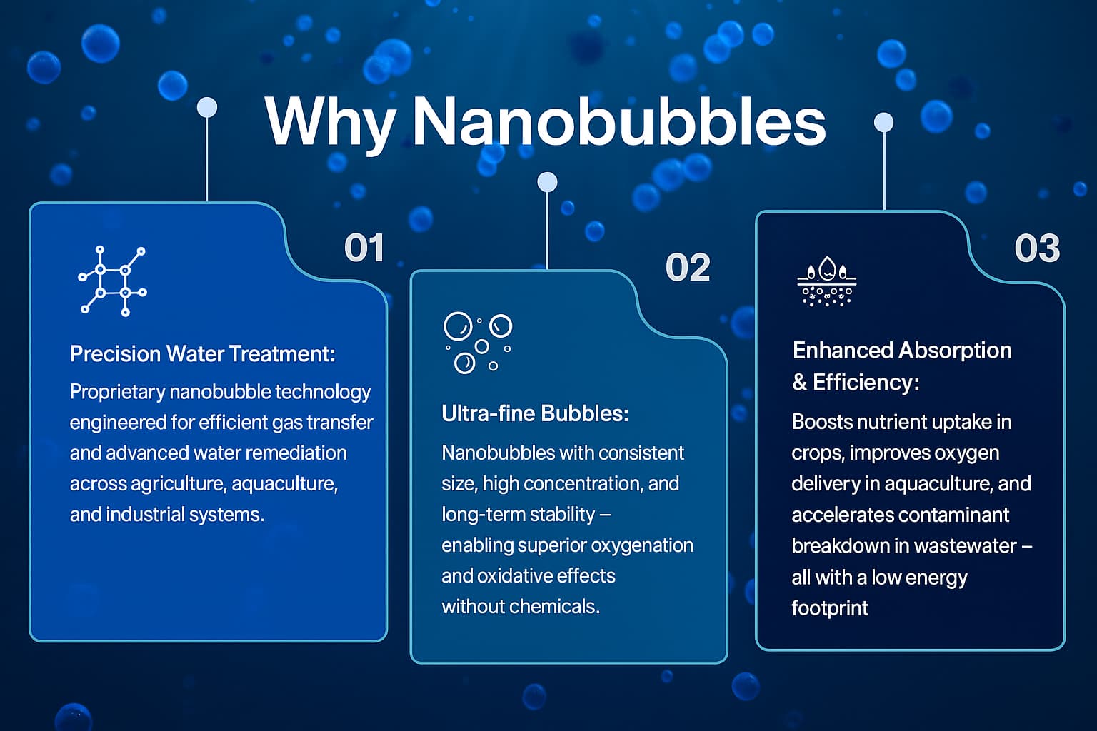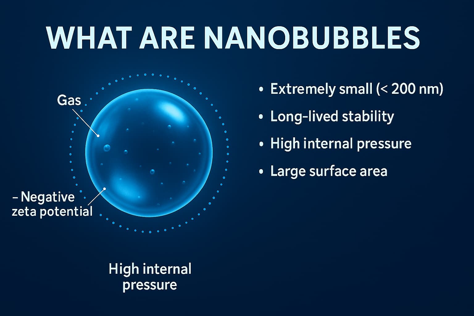 Despite their tiny size, nanobubbles behave very differently from larger bubbles and have unique physical, chemical, and interfacial properties that make them valuable in many industries.